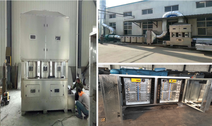 該廢氣經(jīng)過廢氣收集罩到達噴淋洗滌塔通過UV光氧除臭設(shè)備進入活性炭吸附裝置在經(jīng)過管道高空排放。